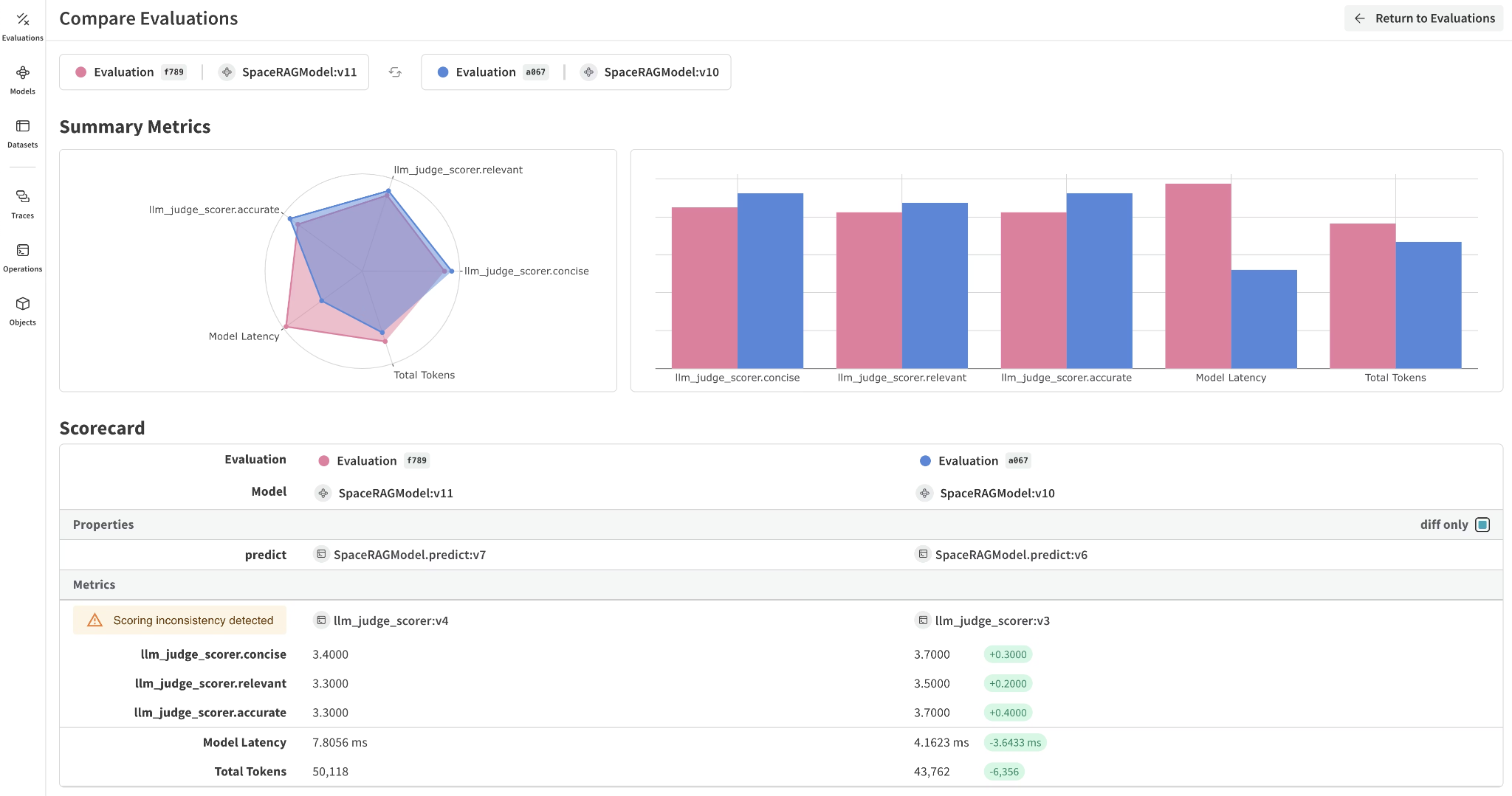 Evals depth measures whether a platform supports LLM-as-a-judge scoring, custom-code scorers, human review, and side-by-side experiment comparisons as part of the core workflow.
