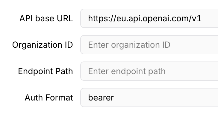 https://eu.api.openai.com/v1 as API base URL.In Auth Format, enter bearer.\